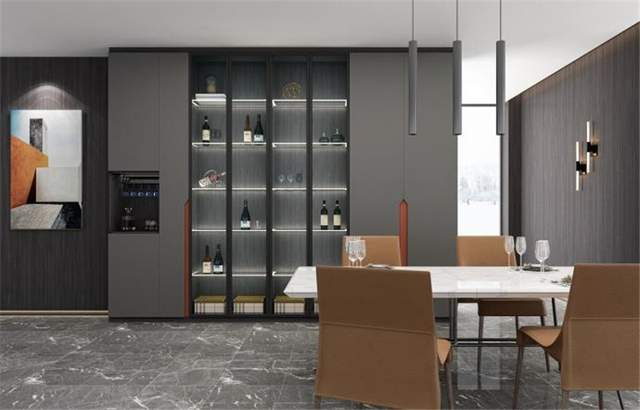 餐廳空間色調(diào)上延續(xù)了高級(jí)灰色調(diào)。摒棄所有不必要的繁復(fù)枝節(jié),保留最本質(zhì)的收納功能,讓人在其中倍感舒適和清爽。